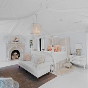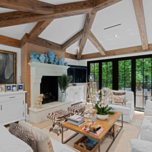 What awaits inside is the epitome of Palm Beach living: grand-scaled living and entertaining spaces in over 5,800 square feet with five bedrooms, six full baths, three half baths, and an enviable poolside loggia. The coastal charms of the Old World are captured in ornately carved fireplaces, rough-hewn wood ceilings, organic materials and patina’d architectural details, while the spoils of modernity are never far away in this amenity-rich, 2016-built home.