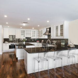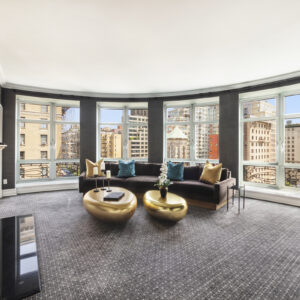 The home itself is a full-floor condo, with streaming natural light from seemingly every angle, and open city views as well. Owners enter via a private elevator landing, which pours into a 30-foot-long reception gallery. The living room is a sun-drenched wonder unto itself, situated along the northern edge of the unit, adjacent to both the (even larger) dining room and library. In the northwestern corner, next to the dining room, a cozy den and breakfast room offers quick access to the large kitchen, which features a butler’s pantry, and tons of high-end, name-brand appliances and fixtures.