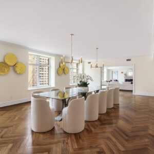 Toward the other end of the home, it can feel like there’s a massive bedroom around every corner — because there is! The primary bedroom has a huge sitting room and dressing room, in addition to two walk-in closets and two marble bathrooms. Two other bedrooms have ensuite bathrooms, and two more share an oversized bathroom between them. And details abound throughout the unit, with hardwood floors, oversized windows, central air conditioning, and much more heaping the feeling of luxury on from every angle.