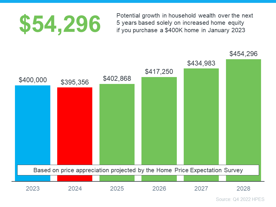 In this example, if you bought a $400,000 home at the beginning of this year and factor in the forecast from the HPES, you could accumulate over $54,000 in household wealth over the next five years. So, if you’re wondering if buying a home is a sound decision, keep in mind what a strong wealth-building tool it is long term.